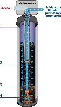Eliminates harmful elements and purifies water coming from the mains..