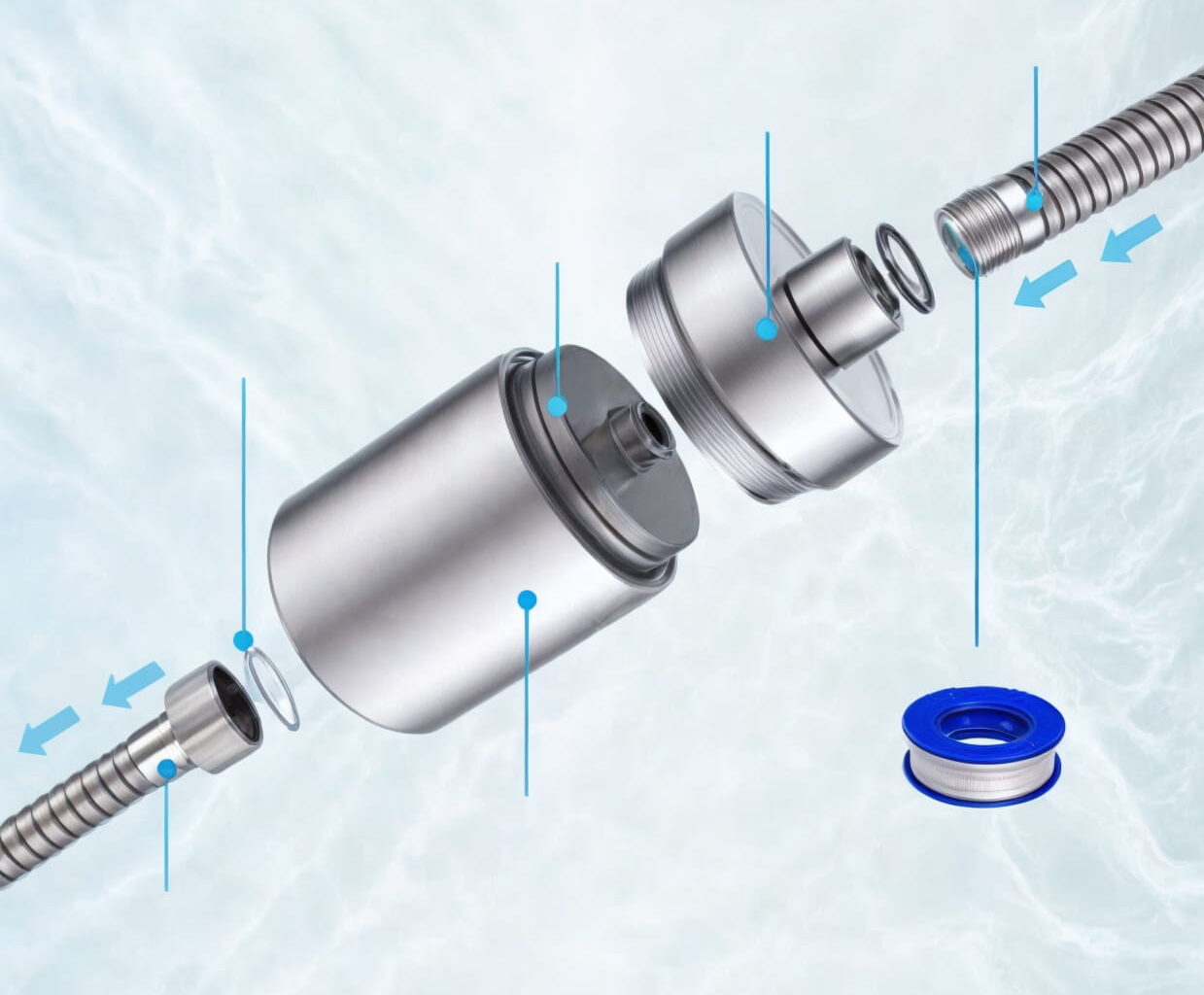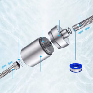 - 6-stage filter: KDF, calcium sulfite, anisotropic ferrite magnet, activated ceramic spheres, carbon filtering, and sediment filtering